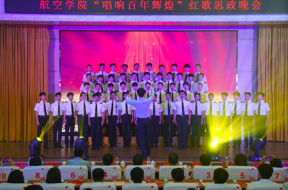 整台晚会分为开篇、永久的红歌、永久的赞歌、永久的信仰和结尾五个篇章,以歌叙史、以史串歌,航空学院11支班级合唱团倾情演绎了《国际歌》《没有共产党就没有新中国》《东方红》《南泥湾》《黄河大合唱》《走进新时代》《不忘初心》《唱支山歌给党听》等10余首耳熟能详的红色音乐,马克思主义学院院长杜永明、中国近现代史纲要教研室教师张宝运讲解了歌曲背后荡气回肠的党史故事,将红色歌曲、思想政治教育与党史学习教育有机融合,生动再现了党的百年光辉历程,歌颂了党的辉煌业绩,展现了党的奋斗历程,讴歌了党的正确领导,展现了党的信念信仰。最后,学校领导和全体师生共同合唱了《我的祖国》,将整场晚会推向了高潮。