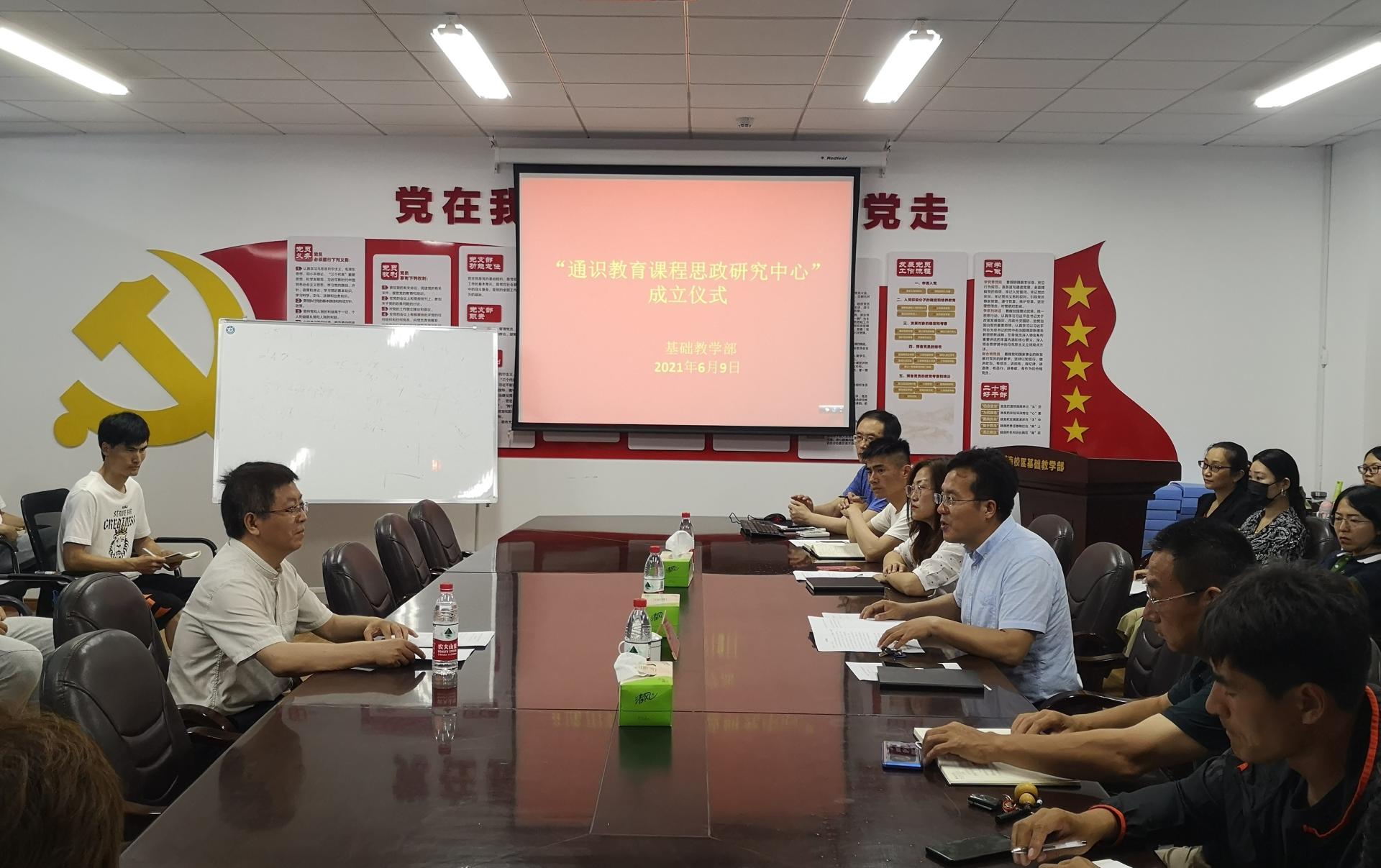 6月9日下午,基础教学部举行通识教育课程思政研究中心成立仪式。学校党委委员、副院长张化祥出席会议并为研究中心揭牌。会议由基础教学部主要负责人主持。