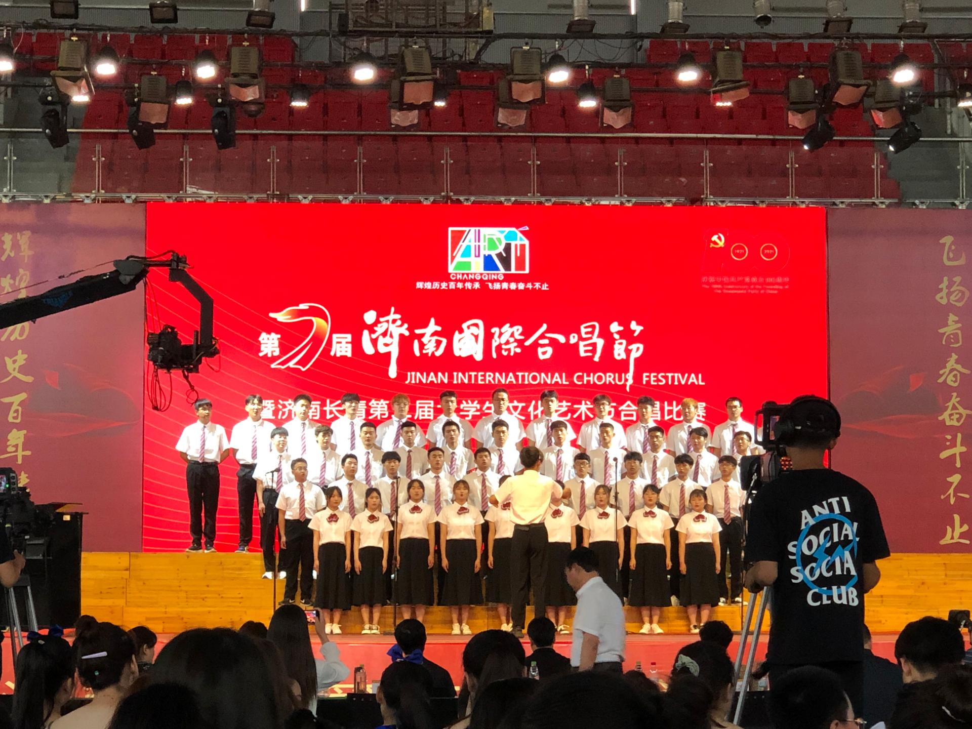 为深入开展党史学习教育,喜迎中国共产党百年华诞,6月17日,由中共济南市委宣传部、中共济南市委教育工作委员会主办,济南市长清区委、区人民政府承办,我校协办的济南国际合唱节暨济南长清第二届大学生文化艺术节合唱比赛在我校体育馆举办。济南市教育局总督学成刚,长清区委常委、宣传部长、区委教育工委书记曲京鹏,区委教育工委常务副书记、区教育和体育局局长王少辉,共青团长清区委书记焦玉燕参加活动。我校党委委员、副院长来逢波出席本次活动并致辞。