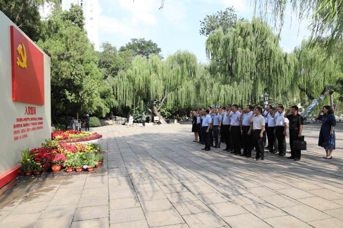 参观学习结束后,在山东省委领导机关旧址北侧美铭广场,王焕斌带领全体党员面对党旗庄严举起右手,共同重温入党誓词,再忆入党初心。