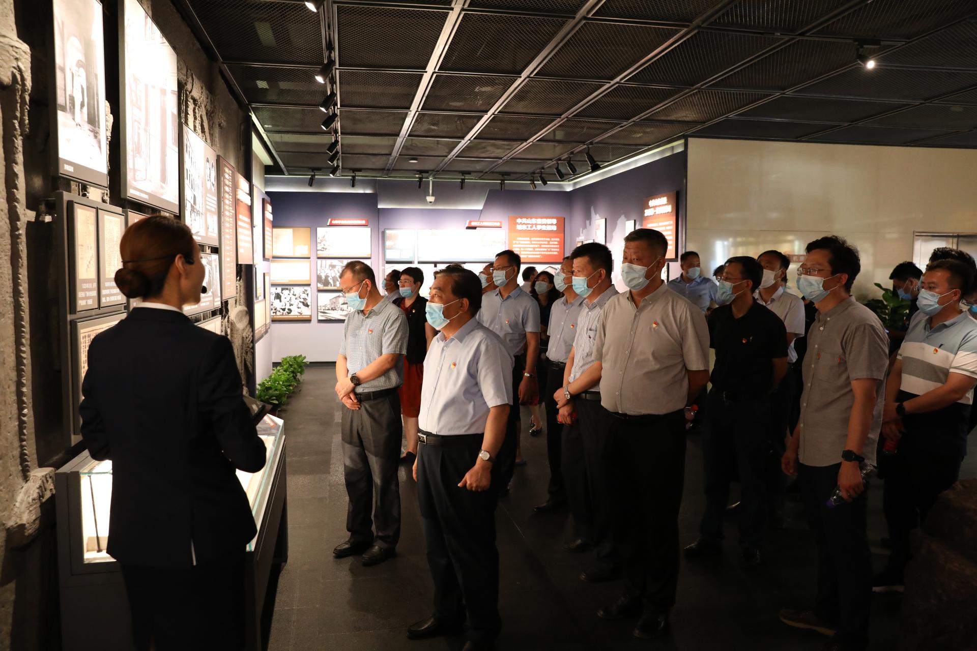 全体人员观看了讲述山东党组织的早期历史以及追溯中共创始人王尽美、邓恩铭等早期共产党人光辉足迹的专题片,并在讲解员的带领下,依次参观了“社会变革、历史选择”“点燃星火、彰显初心”“工农运动、异军突起”“土地革命、前仆后继”“信仰弥坚、铁血担当”“重建省委、抗日救亡”六个部分展览。一件件珍贵的文物、一张张生动的图片、一份份详实的档案、一帧帧朴实的画面,不时让参观人员驻足凝视、深刻思考。