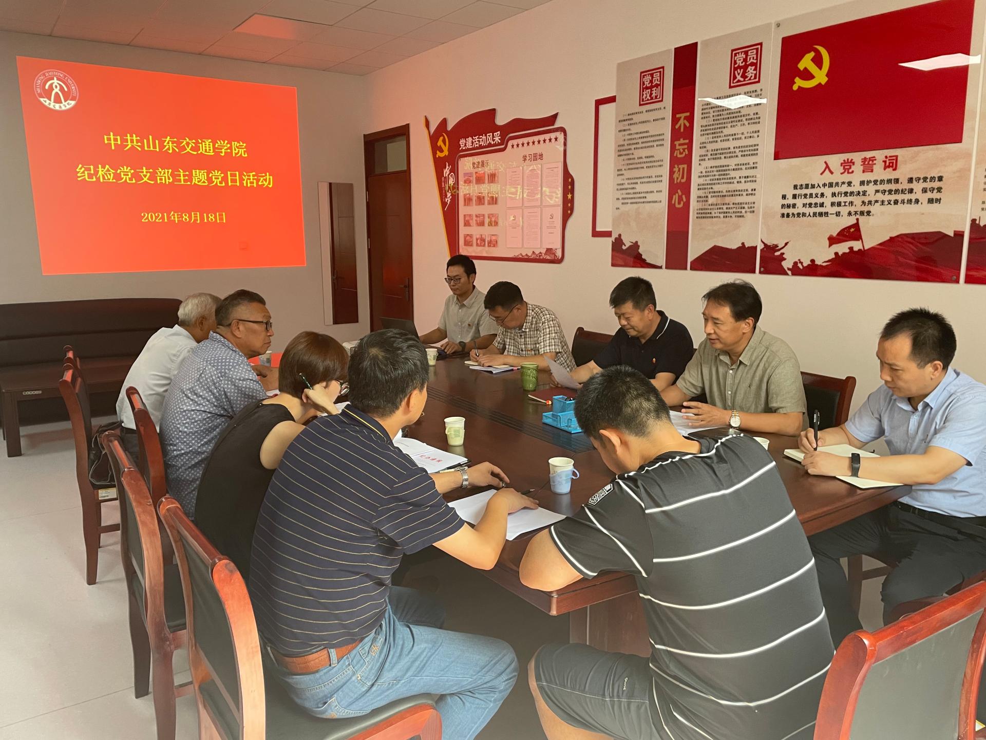 8月18日上午,纪检党支部在长清校区明德楼441开展主题党日活动,组织全体党员集体学习了《求是》杂志发表的习近平总书记重要文章《总结党的历史经验,加强党的政治建设》。学校党委委员、纪委书记、监察专员刘世杰作为普通党员参加活动。