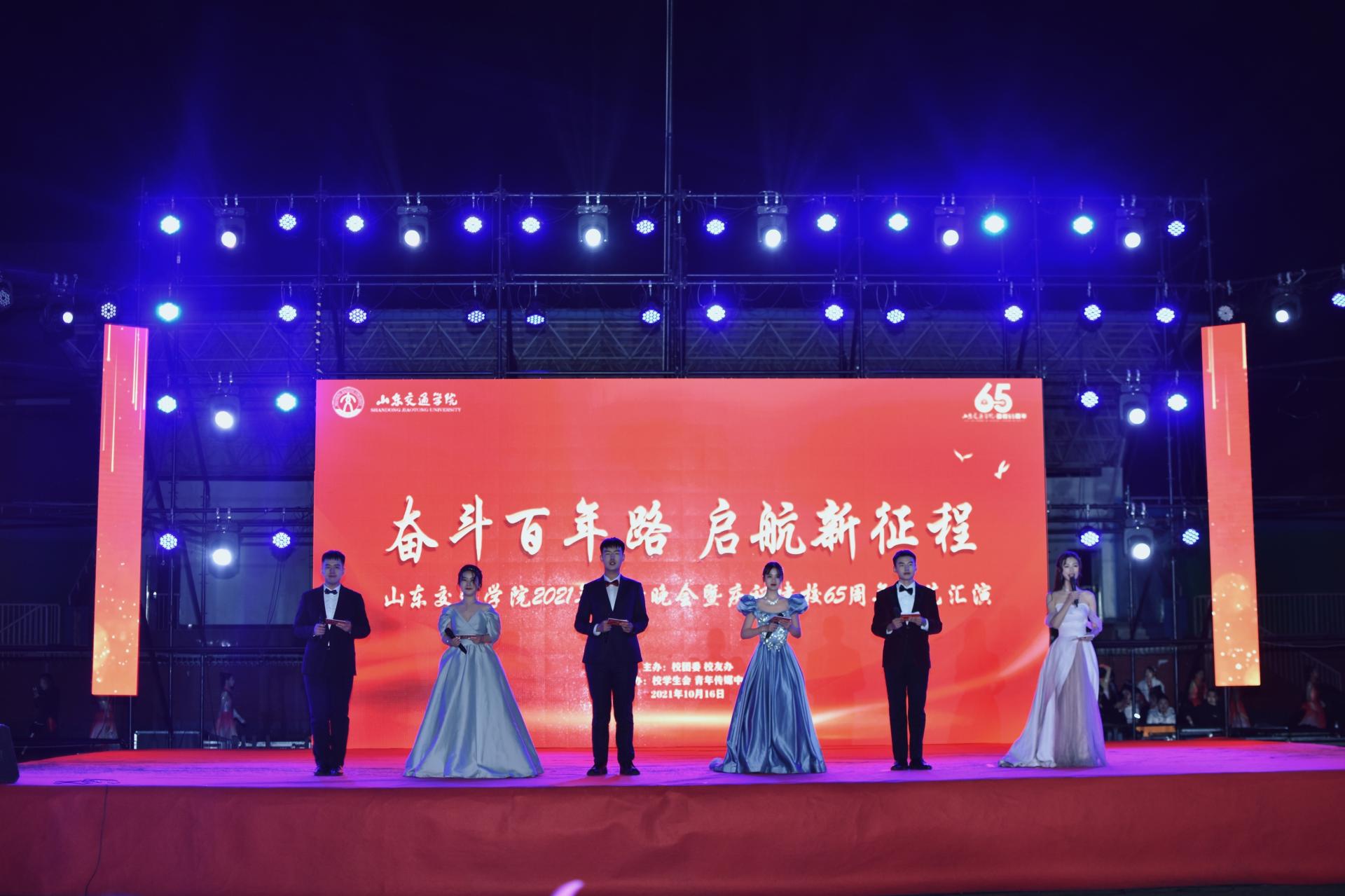 10月16日晚,学校在长清校区体育场举办“奋斗百年路 启航新征程”2021年迎新晚会暨庆祝建校65周年文艺汇演。党委委员、副院长来逢波出席活动。