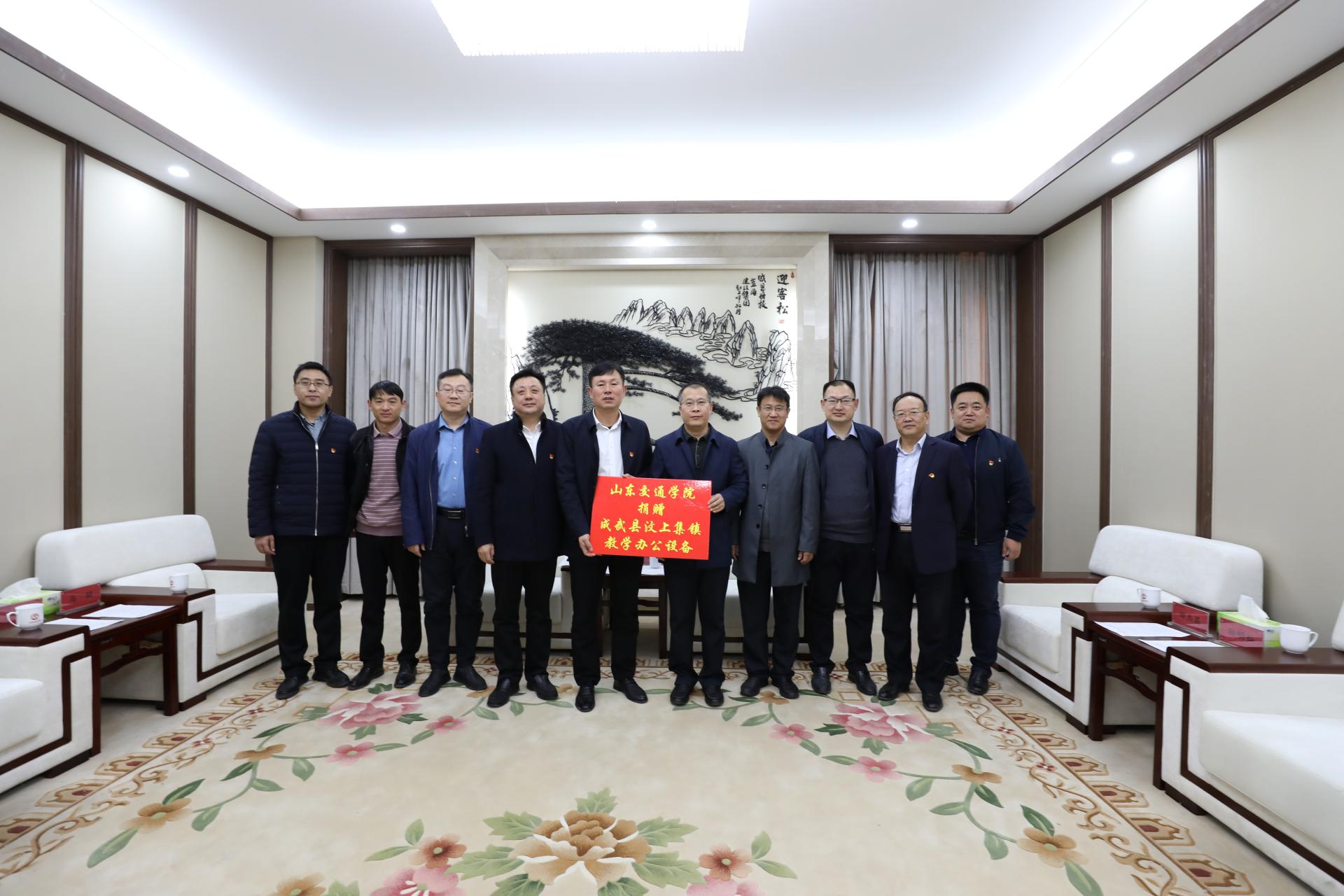 李贞涛代表学校向汶上集镇捐赠了一批教学办公设备,赵中国代表汶上集镇党委政府向学校赠送了锦旗。