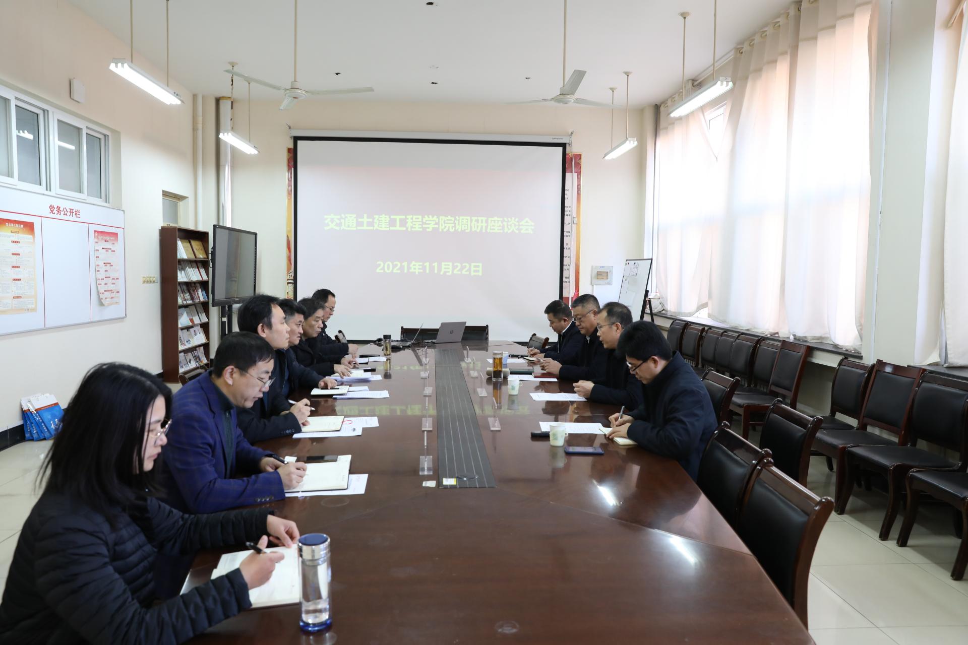 11月22日,陈松岩、李贞涛、张化祥、王晨晖等深入交通土建工程学院、航空学院开展工作调研。