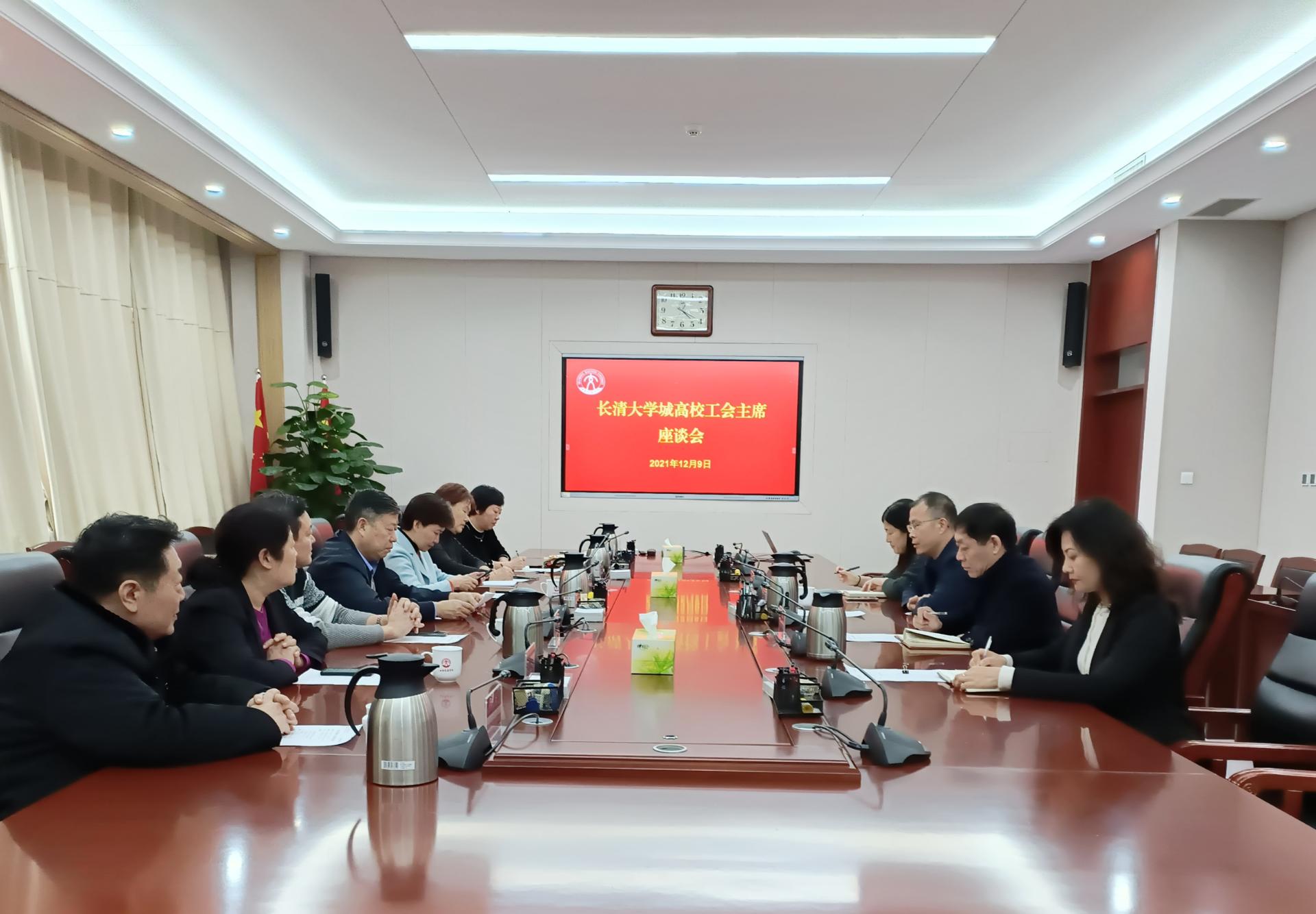 12月9日下午,驻长清高校工会主席座谈会在长清校区明德楼303会议室召开,来自山东师范大学、山东中医药大学、齐鲁工业大学等长清大学城10余所高校的工会主席参加了座谈交流。会前,党委书记王焕斌会见了各高校工会主席。党委副书记李贞涛出席会议并致辞。会议由学校工会主席娄进举主持。