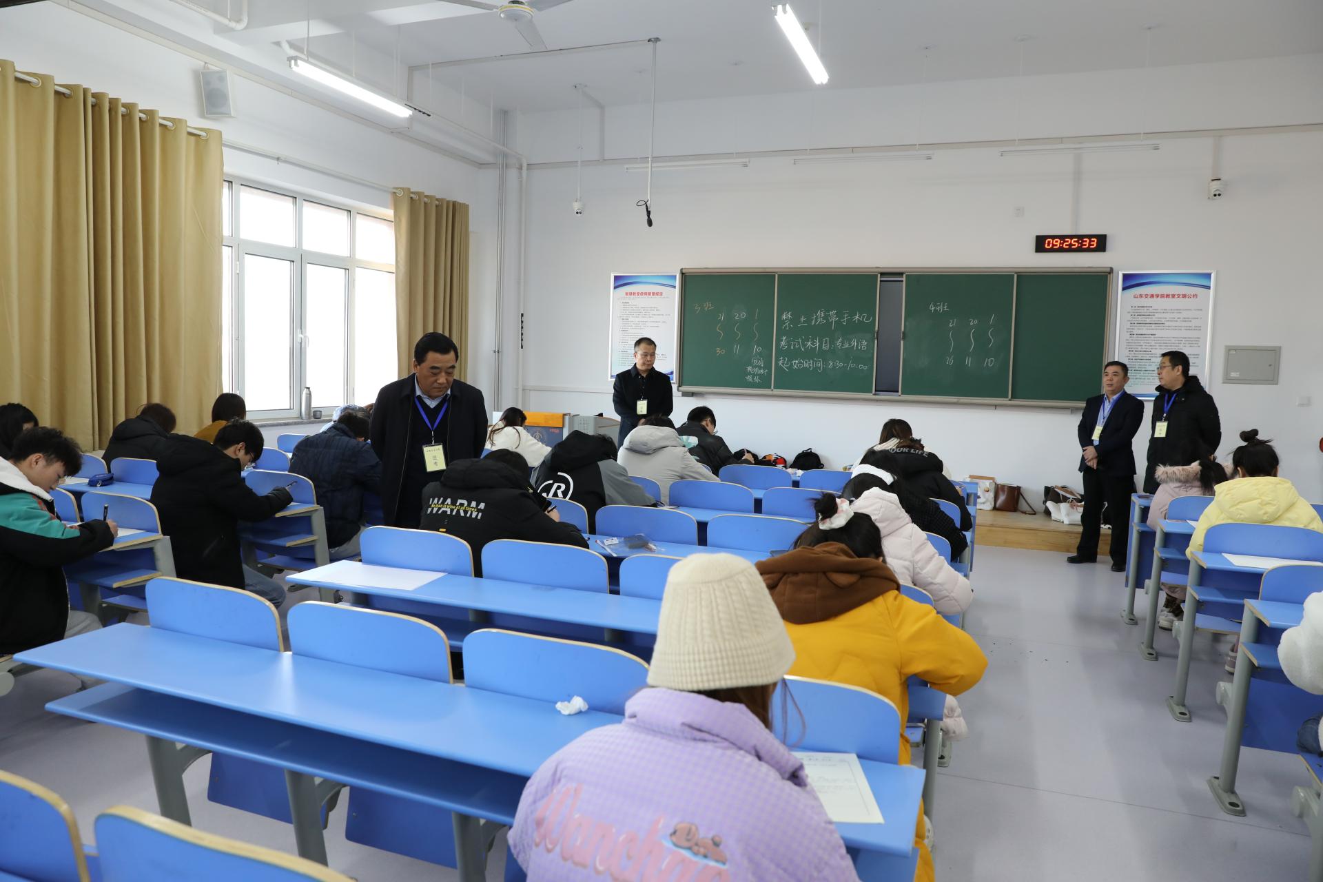 为进一步加强期末考试组织管理,严肃考风考纪,12月27日至31日期间,学校党委书记王焕斌,党委副书记、院长陈松岩,党委副书记李贞涛,党委委员、副院长张化祥,党委委员、党委办公室(学校办公室)主任、党委统战部部长王晨晖深入考场一线检查期末考试工作。