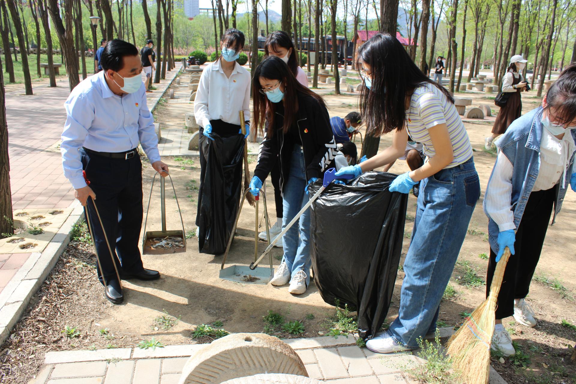 王焕斌同师生党员一起参加志愿公益劳动,清理了校友林等处的杂物垃圾,并与党员们进行交流。他指出,本次主题党日活动不仅是一次生动的劳动实践课,而且是一次鲜活的党性教育课。他对比了过去的困难日子和今天的幸福生活,让大家深刻感受到中国共产党领导下人民生活发生的翻天覆地的变化,更加坚定了同学们不忘初心、永跟党走的决心。