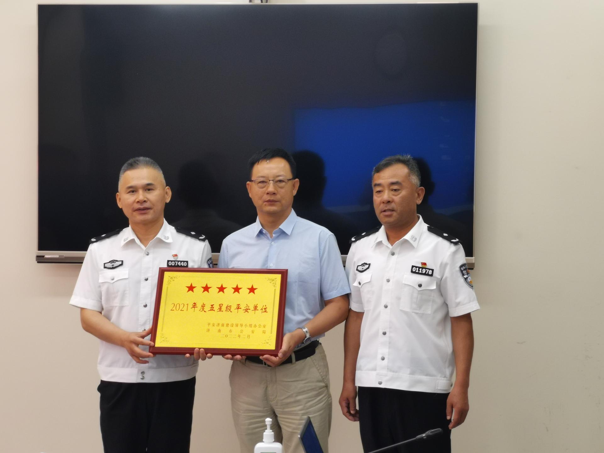 近日,平安济南建设领导小组办公室、济南市公安局下发《济南市公安局关于表彰2021年度全市单位内部治安保卫工作先进集体和先进个人的决定》,我校荣获“五星级平安单位”称号,学校党委委员、副院长曲同军代表学校接受授牌;安全管理处王彤被授予单位内部治安保卫个人三等功。