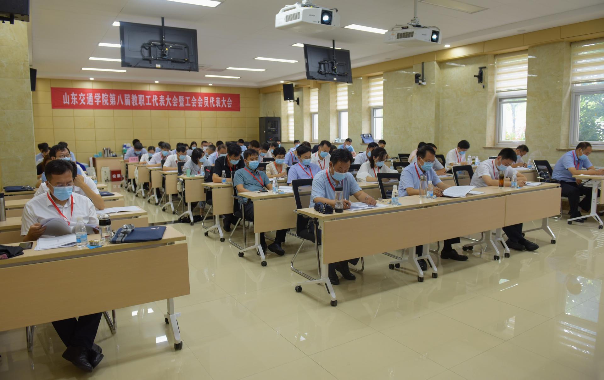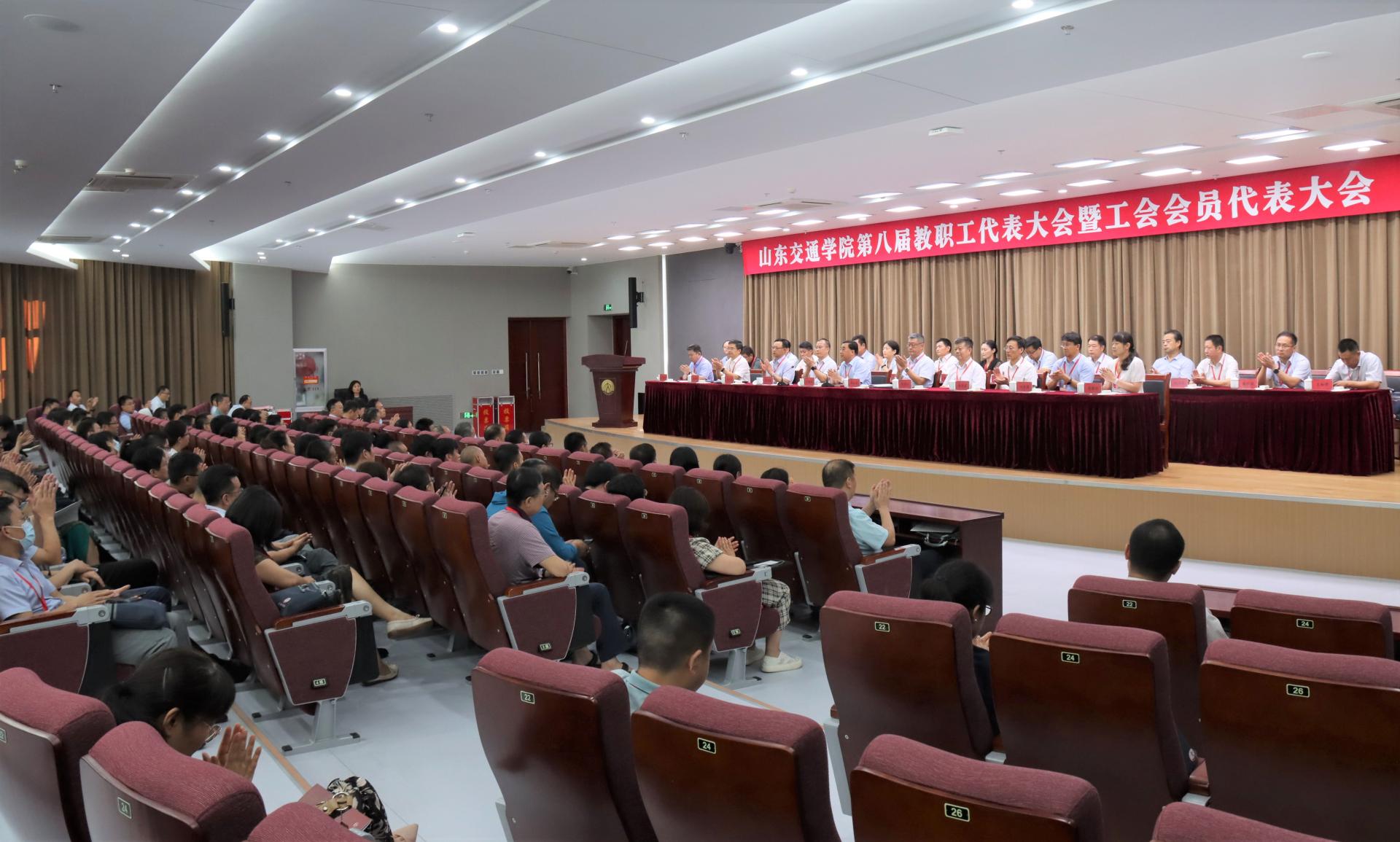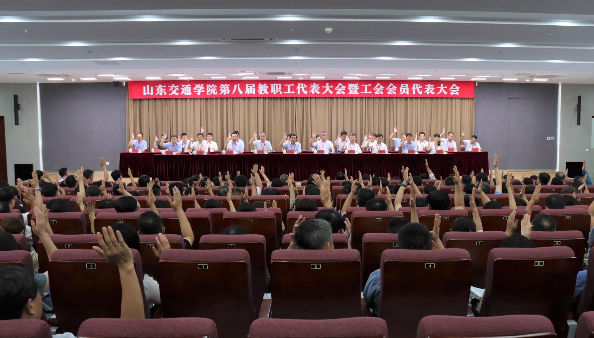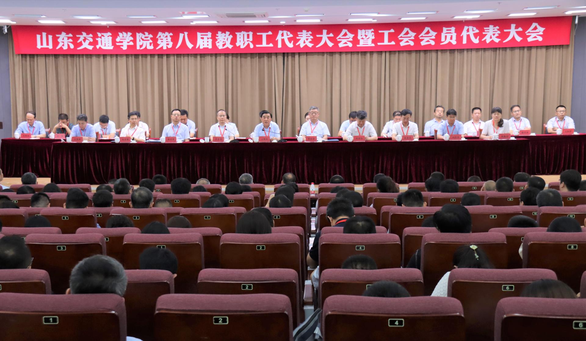 6月23日,山东交通学院第八届教职工代表大会暨工会会员代表大会在长清校区召开,省教育工会副主席赵晓枫出席会议并致辞,学校党委领导班子成员和来自不同岗位的正式代表、列席代表300余人参加大会。大会在威海校区设立视频分会场。大会由党委副书记李贞涛主持。