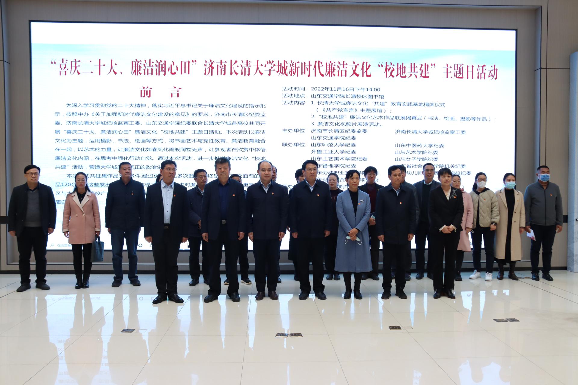 活动中进行了长清大学城廉洁文化“共建”教育实践基地揭牌和长清大学城廉洁文化艺术作品联展揭幕仪式,与会人员共同参观了学校《共产党宣言》主题展、廉洁文化艺术作品联展及师生现场展演等。