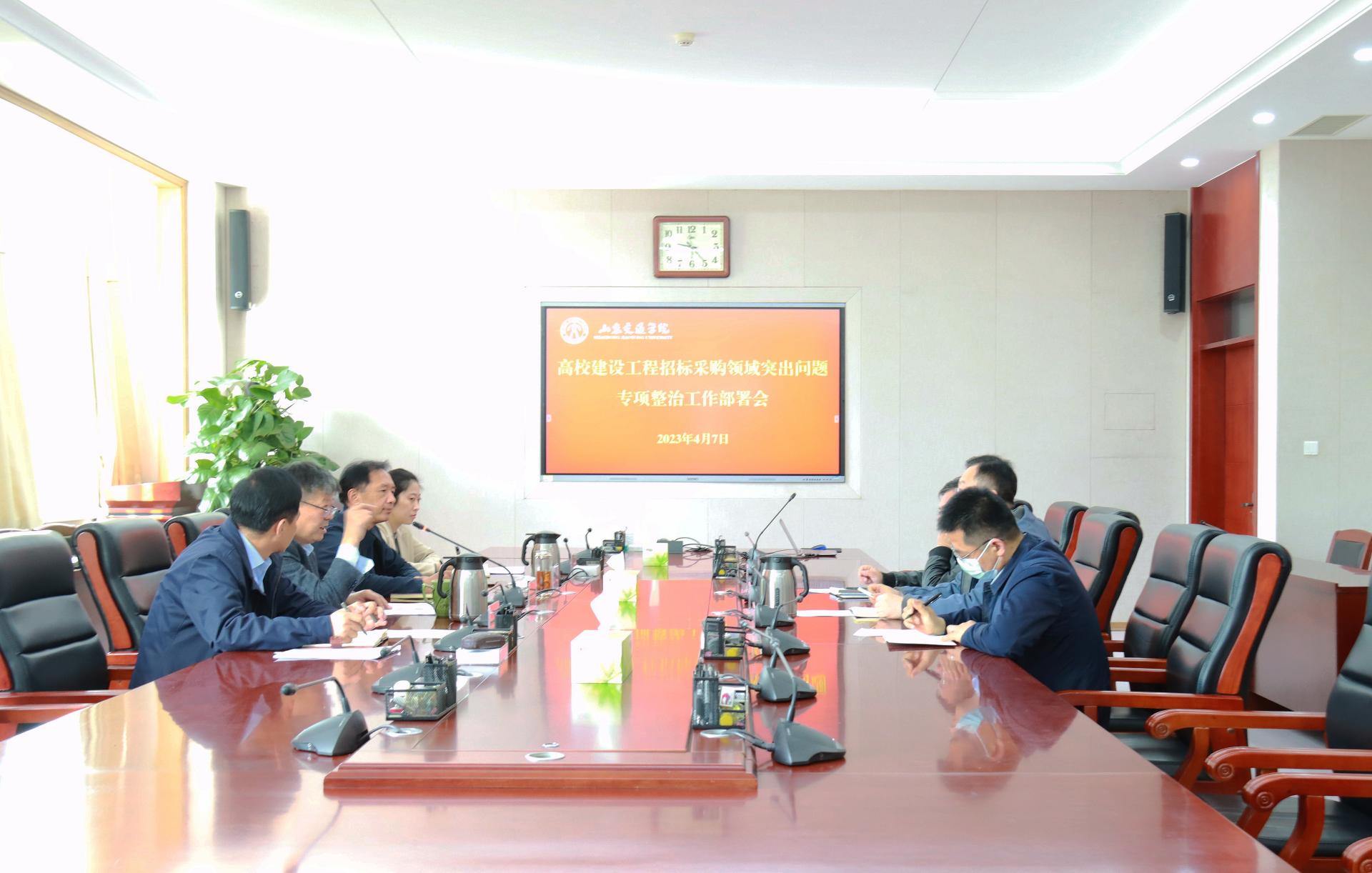 4月7日上午,学校在长清校区明德楼303会议室召开高校建设工程招标采购领域突出问题专项整治工作部署会。学校党委委员、纪委书记、监察专员刘世杰出席会议。
