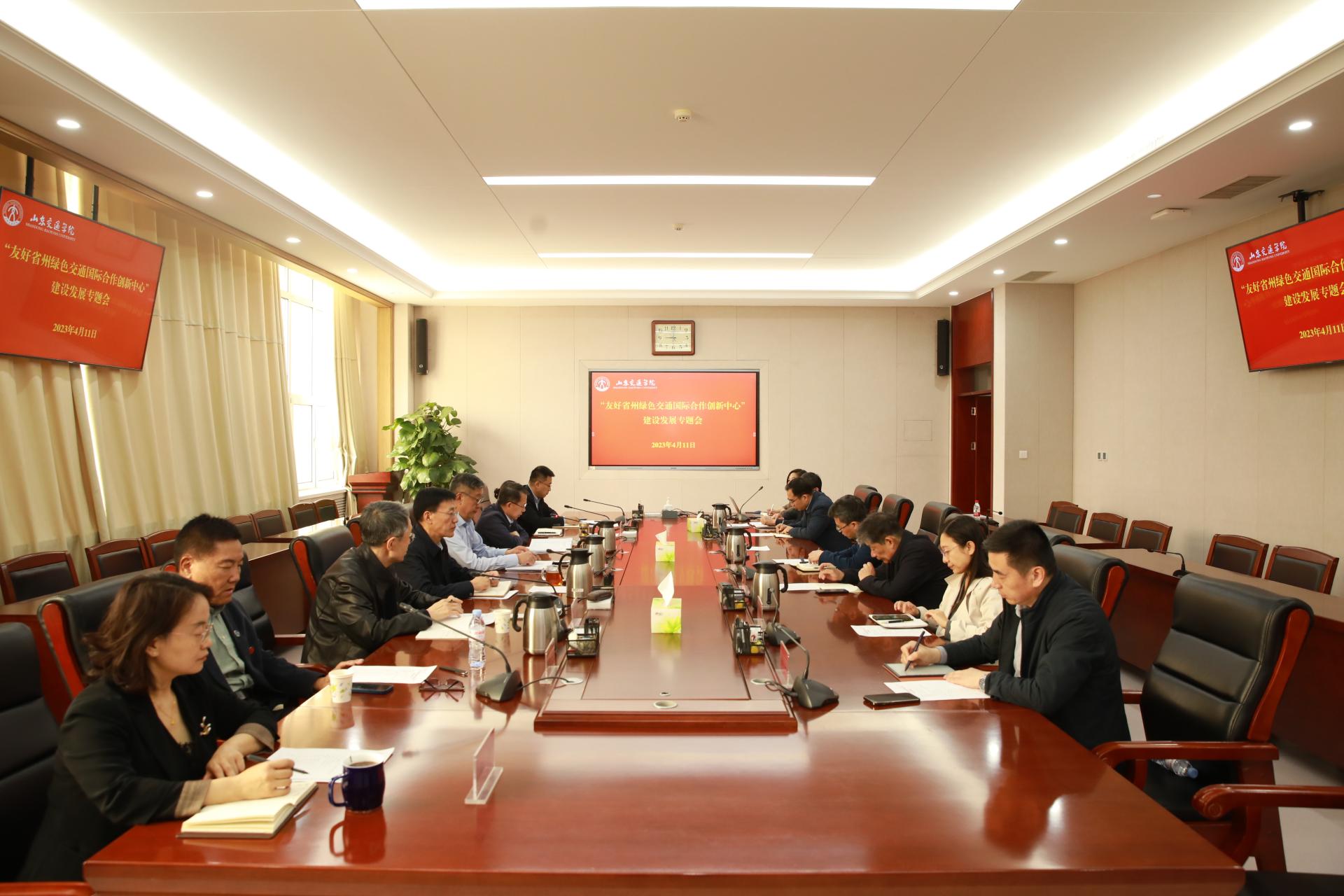 4月11日上午,学校在长清校区明德楼303会议室召开“友好省州绿色交通国际合作创新中心”建设发展专题会。学校党委副书记、院长陈松岩,党委委员、副院长姜华平,党委委员、副院长来逢波出席会议。会议由姜华平主持。
