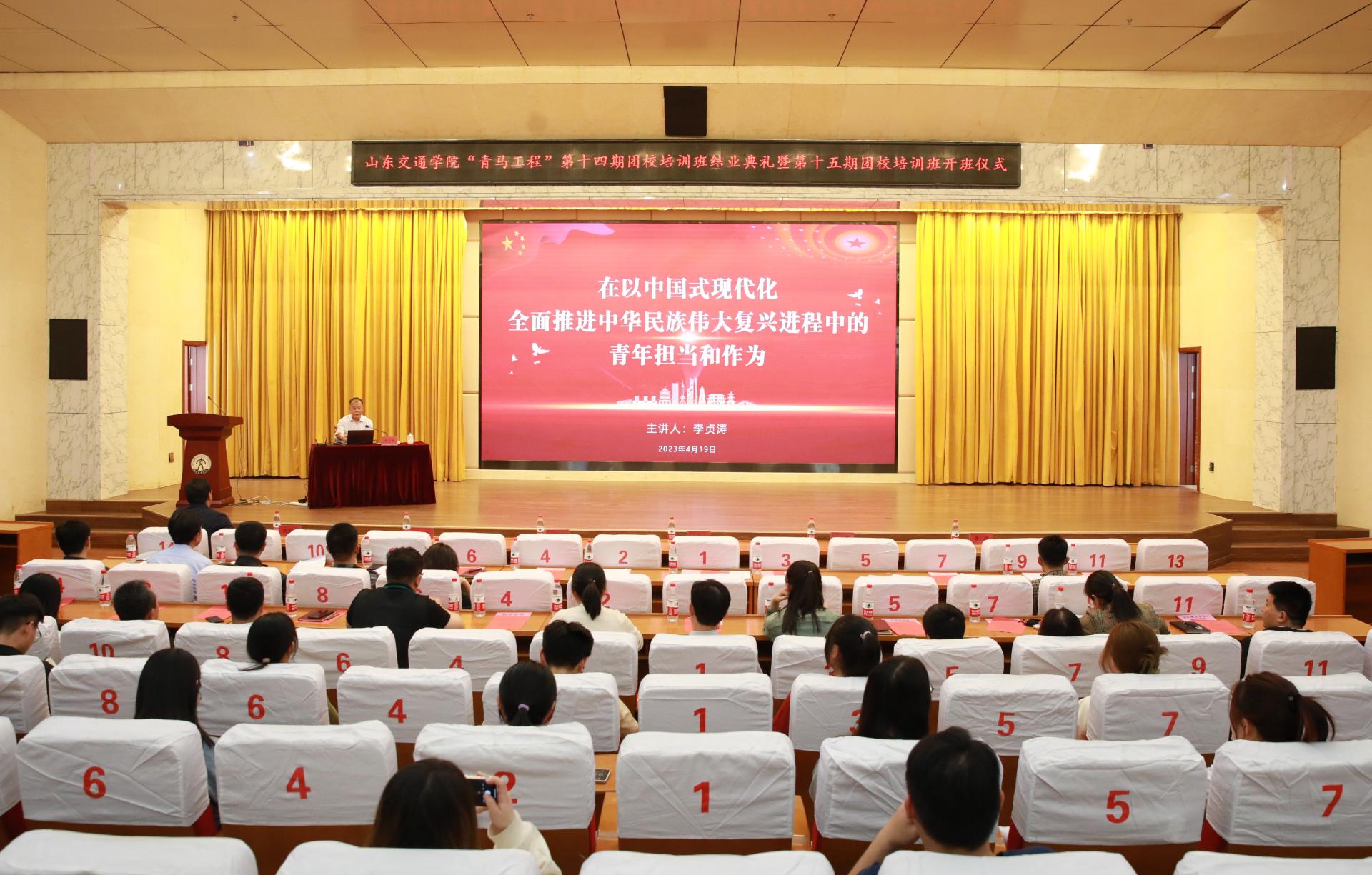4月19日下午,学校在长清校区学术报告厅举行“青马工程”第十四期团校培训班结业典礼暨第十五期团校培训班开班仪式。学校党委副书记李贞涛出席活动并讲话。