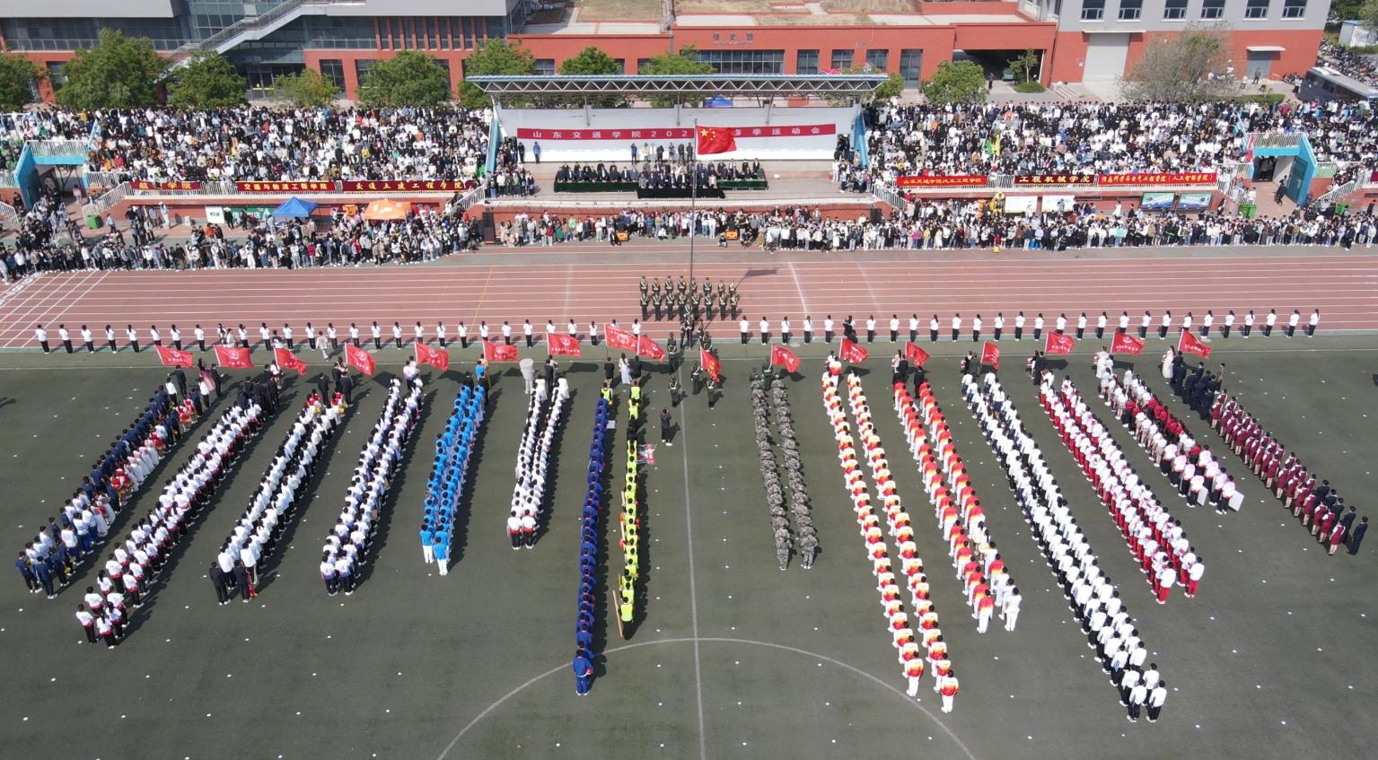 伴随着激昂的《运动员进行曲》,国旗护卫队、彩旗队、鲜花队、军魂连、裁判员方队以及长清校区13个二级学院代表队,迈着整齐坚定的步伐,在嘹亮的口号声中依次走过主席台,充分展示了我校师生蓬勃向上、积极进取的精神面貌。
