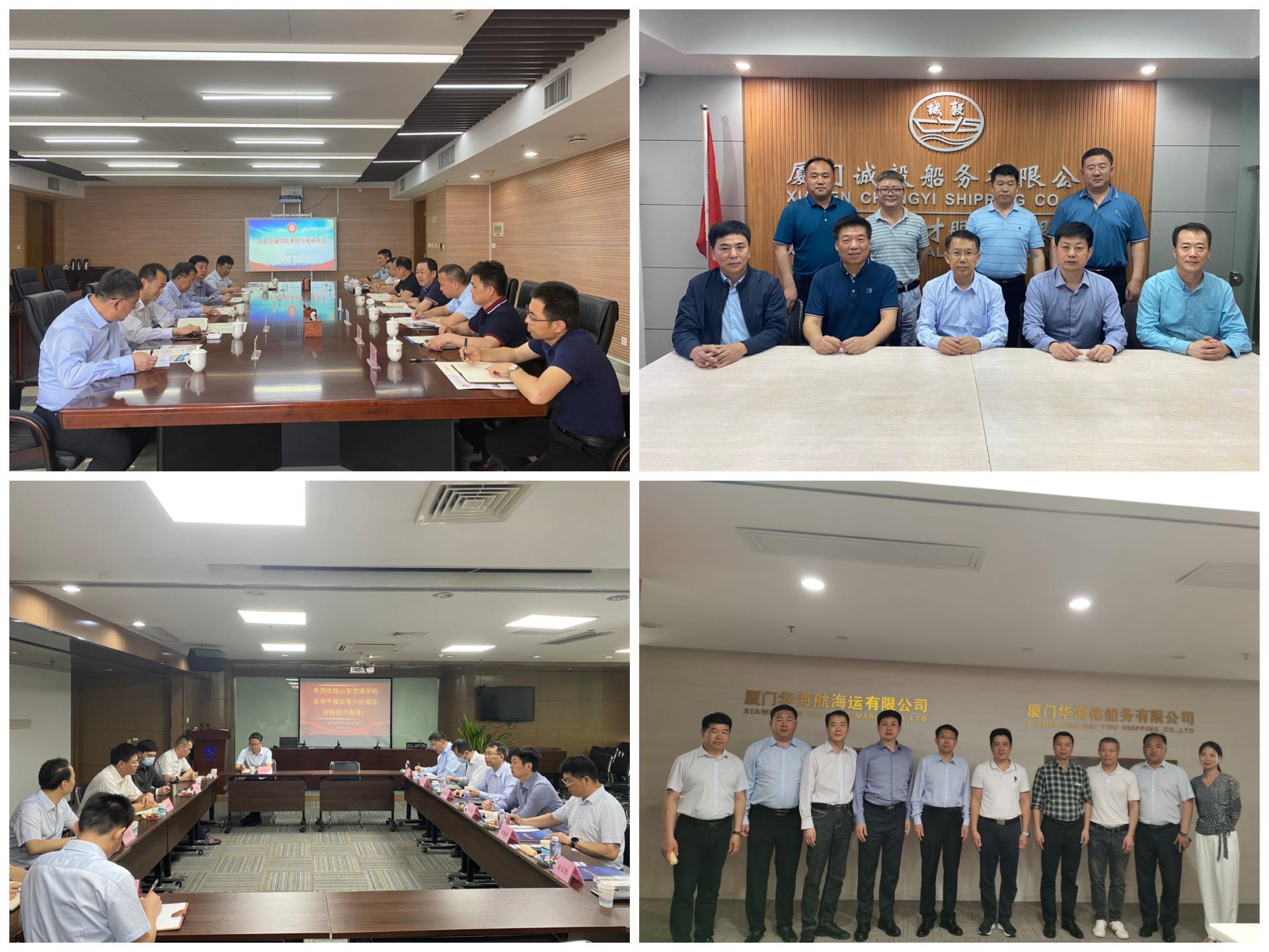 调研期间,姜华平一行还先后走访了厦门海隆对外劳务合作有限公司、厦门华海佑船务有限公司、厦门诚毅船务有限公司、厦门泓庚航海科技有限公司。交流期间,各企业对学校近年来在教育教学、人才培养等方面取得的成绩给予高度评价,表达了加强合作交流的意愿。双方就新形势下船员市场发展、航海类毕业生就业稳定性的影响因素、提高航海类人才培养质量的重点措施等方面进行交流。