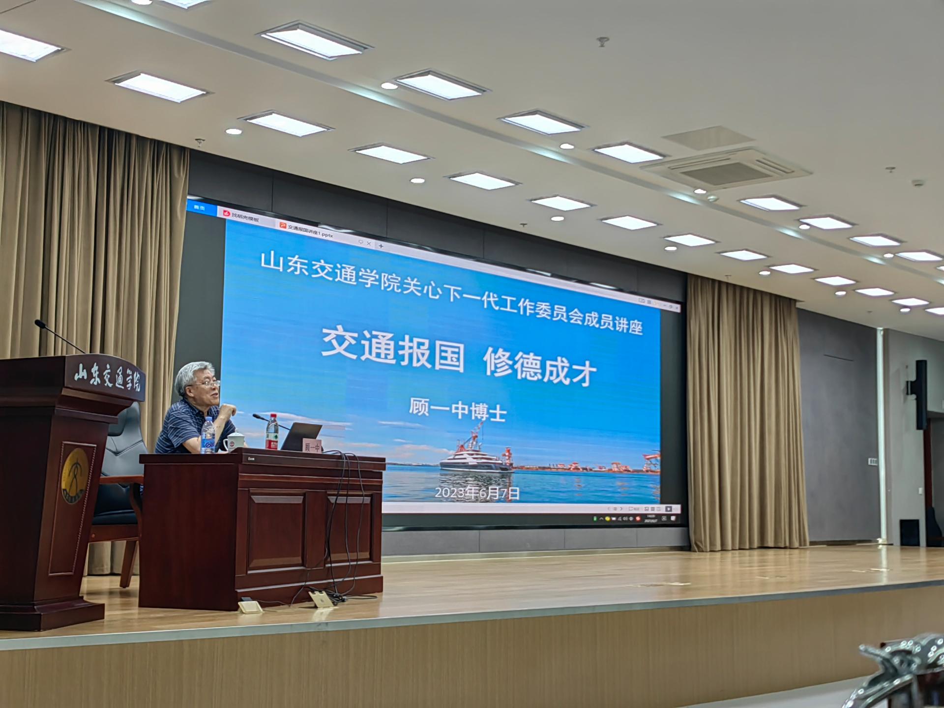 报告会上,顾一中作《交通报国 修德成才》报告,从交通报国身边榜样、广阔前景、报国立业三个方面,讲授了中国及山东船舶发展史及中国船舶工业的现状和未来发展前景,给同学们上了一堂生动的爱国主义教育课。