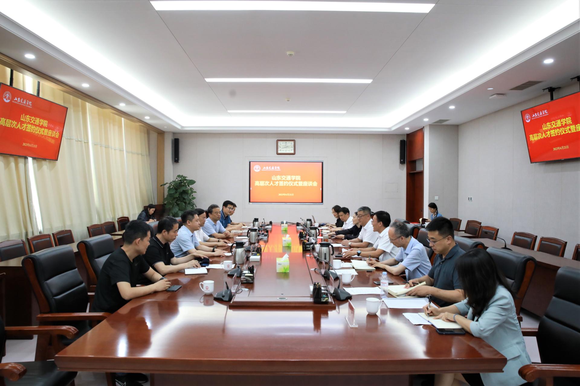 为进一步实施人才强校战略,6月21日下午,学校在长清校区明德楼303会议室举行国家级人才刘洪彬教授签约仪式暨座谈会。学校党委书记王焕斌亲切会见了刘洪彬;党委副书记、院长陈松岩,党委委员、副院长来逢波出席会议。会议由来逢波主持。