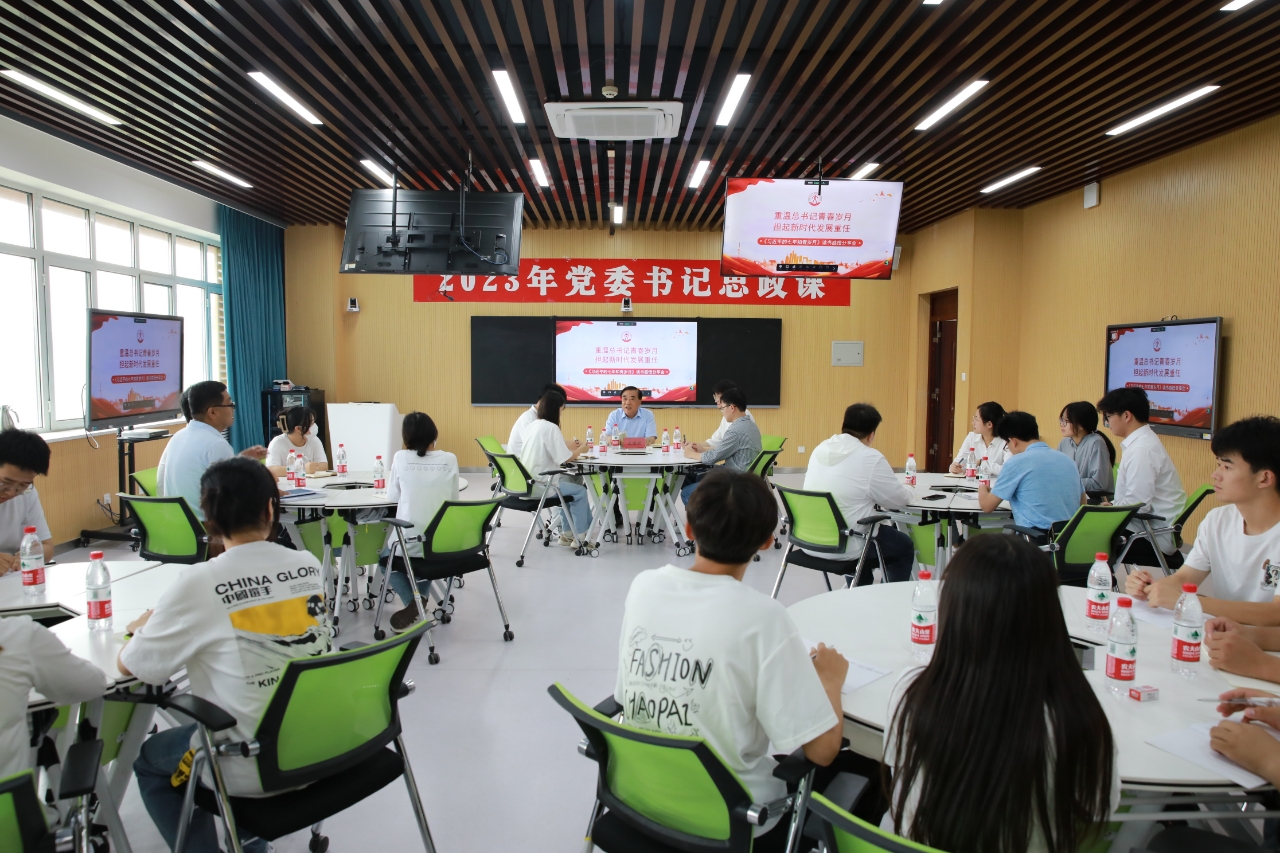 6月25日下午,学校党委书记王焕斌在长清校区机电楼A218智慧教室,以《重温总书记青春岁月,担起新时代发展重任——<习近平的七年知青岁月>读书感悟分享会》为题,给青年学生讲授思政课。